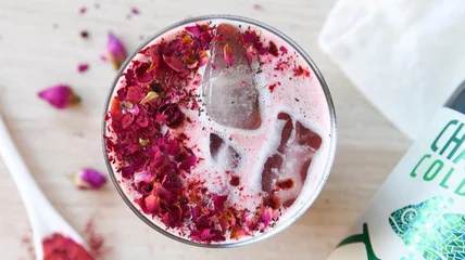The latest trend in lattes? Adaptogenics, add-in ingredients chosen for their promised calming effects. This Malted Mocha Frapp recipe uses CBD oil, one of the more famous adaptogens, to create a latte that helps take the edge off as you caffeinate. Or if you're feeling more adventurous with adaptogenic ingredients, opt for this Iced Rose Adaptogen Latte (get the recipe), which uses the herbal supplement ashwagandha for its purported stress-reducing properties. Coupled with beet root powder and a dried rose petal garnish, this is a latte that looks good and might make you feel great.