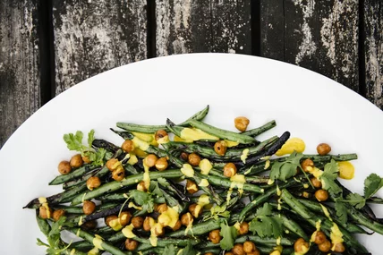 Grilled Green Bean Recipe With Chickpeas & Yogurt
