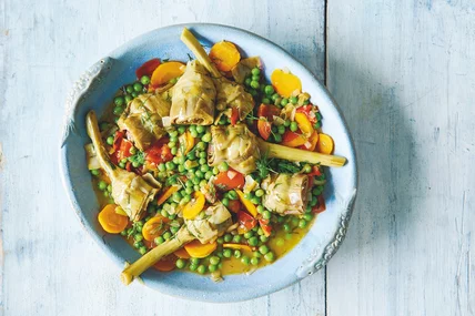 There's something inherently satisfying about kitchen tasks like breaking down an artichoke by hand or freeing fresh peas from their pods. And in this produce-forward Greek recipe from Heather Thomas's The Greek Vegetarian Cookbook, you get to do both. Swapping in frozen is definitely an option if you're short on time, but Thomas encourages the fresh route if you're able.