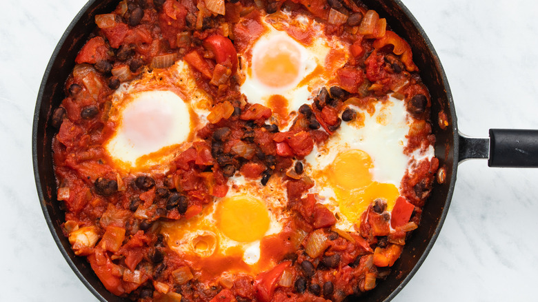 Quick, close your eyes and think of the first Mexican dish that comes to mind! You may picture tacos, burritos, fajitas, or maybe even some chimichangas. But what about huevos rancheros? The classic Mexican recipe, enjoyed across much of the country and in countries beyond, is most often eaten as a breakfast, seeing as eggs are a big component. And with this one-pan huevos rancheros recipe, courtesy of developer Catherine Brookes of Blue Sky Eating, you can prep this classic breakfast or brunch dish with about 5 minutes of prep and less than half an hour of cooking time. As for how best to enjoy your handiwork? "With rice, on a tortilla wrap, or with corn chips, or even with warm crusty bread," says Brookes.