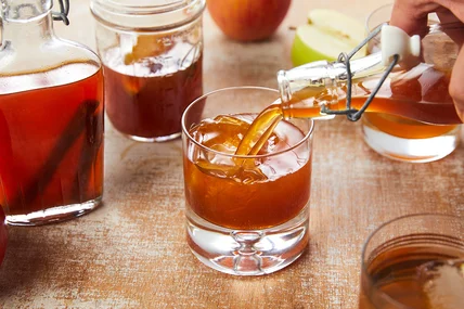 For those who haven't had moonshine, it's not for the faint-hearted. It's 100-proof unaged corn whiskey, which means it's 50 percent alcohol. Not ones to be dissuaded by a strong spirit, we're making our own for the season by diluting moonshine to 25 percent with a reduction of apple cider, apple juice and warm apple pie spices including cinnamon and clove. It's sweet and boozy, and sure to keep you warm all fall.