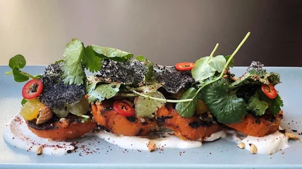 This restaurant-quality side features sesame yogurt, chiles and cashew dukkah