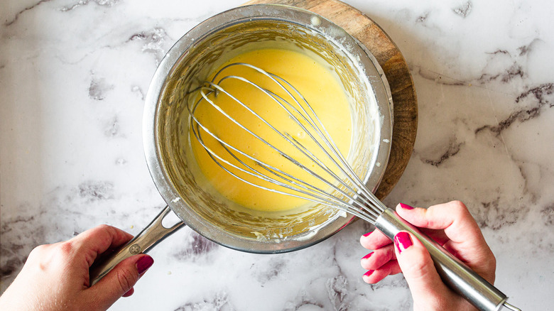 And finally, the crowning glory of traditional eggs Benedict is the hollandaise sauce, which French cooking lore decrees must be made with clarified butter. This needs to be done à la minute, so this will be the last step before serving our dish to the table. It's a lot of steps, but if you follow our step-by-step guide, it's absolutely feasible.