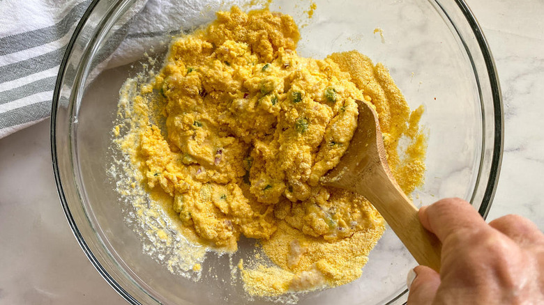 Mix together the hush puppy batter