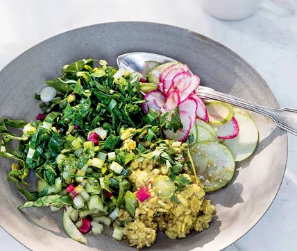 Wash down these curried oats with a chia seed tonic and try a Nordic-inspired version of savory oatmeal.