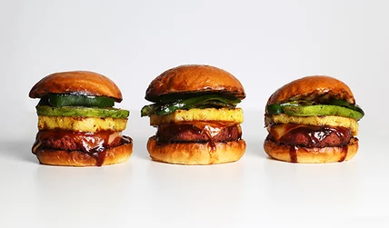 - Assemble the burgers by placing a patty on each of the bottom buns, spooning some BBQ sauce on the cheese and then layering the pineapple, avocado and poblano slices before finishing with the top buns. Enjoy immediately.