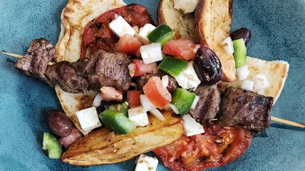 Learn how to make grilled lamb souvlaki and a Greek salad with this recipe from Giannis Kotsos of Meraki Greek Bistro in Miami — perfect for Easter.