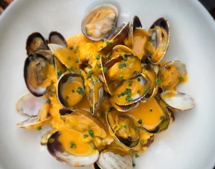 Manila Clams with Couscous, Cauliflower and Carrot Sauce