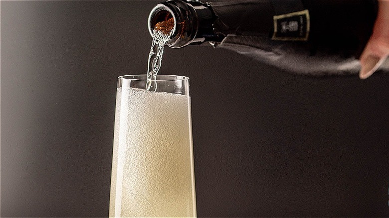 - Strain into a Champagne flute. Top with Champagne or sparkling wine.