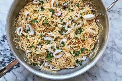 Fideos is the original one-pan pasta. It's the Spanish cousin of risotto, in which thin pasta is swapped in for the rice. Here, a simple list of ingredients is turned into a boldly flavored seafood meal. He enjoys including squid ink for a blackened version, but the dish will still be delightfully briny without it. If you do go that route, add the ink when you add the calamari in step three.