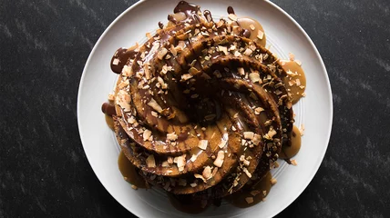 A giant spiced Bundt cake version of the cookie, filled with coconut and chocolate chips, then topped with rich caramel sauce, chocolate-coconut sauce and toasted coconut flakes (watch the video).