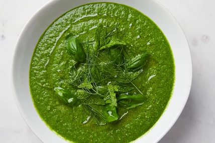 "Sometimes [customers] are curious how much the flavor of the broth comes through," Canora explains. "The result is more of an overall savoriness than a pronounced broth flavor." Combining the brightness of fresh green veg with the satiating richness of bone broth produces a summer soup unlike your typical tomato gazpacho.