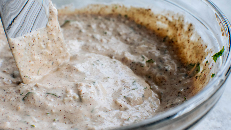 5. In the meantime, mix together the crema, mayonnaise, lime juice, cheese, cilantro, and chili powder in a small bowl.