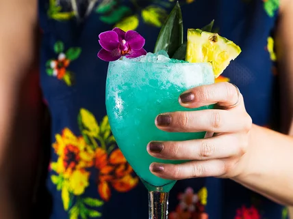 Looking for something tropical to serve this summer? It's time to turn to tiki, if you aren't already on this timeless trend. Here, vibrant blue curaçao adds a touch of Day-Glo to a cocktail from NYC's Slowly Shirley in NYC. Add to that the curious addition of vodka in this rum-based genre, and you've got something that will really start the party.
