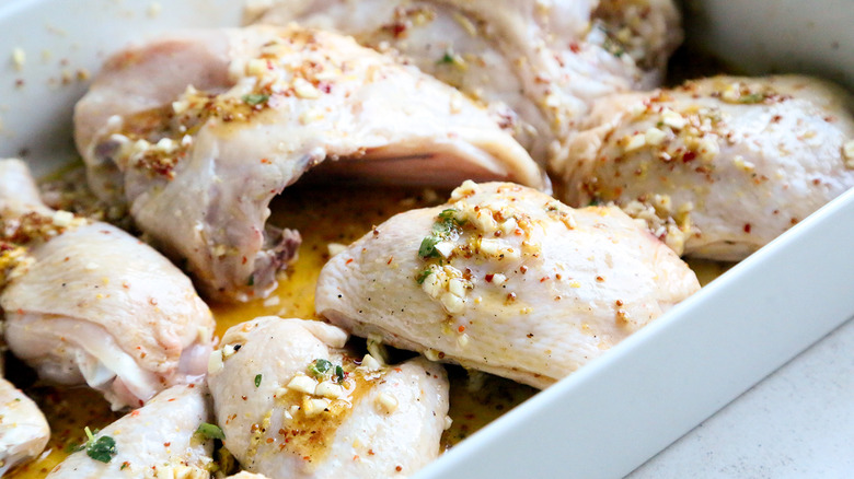 Of course, the key to perfectly marinated chicken is ... you guessed it: the marinade. The trick is to include bold and acidic elements that work together to tenderize and flavor the chicken. For this recipe, one ingredient, in particular, sticks out. "The whole-grain mustard is the tastiest part, adding a complementary sharpness to the marinade that works nicely with the lemon zest and juice," Altan says. Plus, she adds that it's a simple recipe with ingredients that are easily sourced, and may already be in your kitchen.