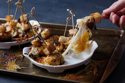 These dumplings are notorious for a reason. Chef Chris Santos of NYC's Stanton Social makes a rich, French onion soup mixture, which he then freezes and wraps into dumplings before deep frying them and broiling them with cheese. Topped with a garlicky crouton, these dumplings from Share: Delicious and Surprising Recipes to Pass Around Your Table, Santos's new cookbook, are addictively delicious.