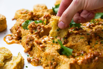 Bake jalapeño biscuit scraps to make an edible tray for creamy and spicy gravy. It's the perfect snack to feed a crowd.