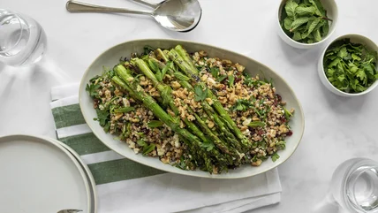 Douglas does say that if asparagus is not in season where you live, "both broccolini and zucchini would be brilliant alternatives." She also notes that the farro could be replaced by spelt or quinoa, with the latter making the salad gluten-free.