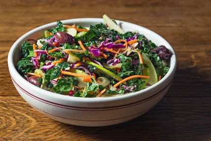 Hearty Tuscan kale, apples, kalamata olives, feta cheese and more get tossed with an oregano and red wine vinaigrette.