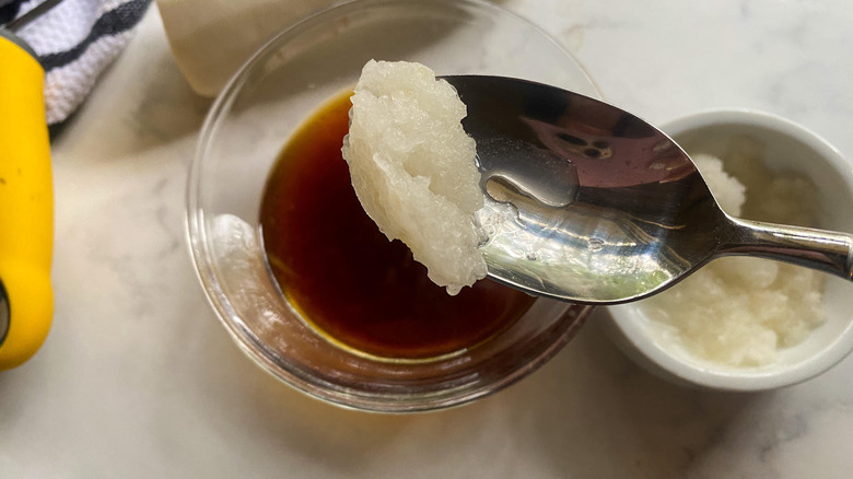 Using a micro plane, grate the daikon radish finely. Then, you can add it to the mixture.
