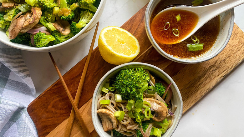 Here's the best part — you get to serve the ponzu sauce with daikon to your lucky guests. This sauce is super tasty and can go on several Asian dishes, but Hahn provides her favorite suggestions. "Love it with any sort of rice or noodle dish. Great with any sort of dumpling or wonton....super versatile," Hahn shares.