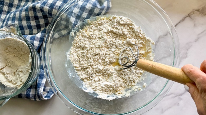 Most people assume that English muffins were created in England, but they were actually invented in New York by an immigrant from England who was trying to make a crumpet variation and alas — the English muffin was born (via Gold Medal Bakery). This recipe is brought to us by recipe developer Miriam Hahn who says, "I love making homemade English muffins because they're easier than you think, and I always have the ingredients on hand. There is nothing like the amazing aroma of fresh bread cooking in the house." Read on to learn how to make English muffins at home.