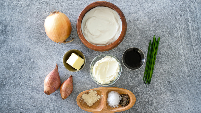 To give the dip that classic creamy consistency, you'll use both crème fraîche and mascarpone cheese — two ingredients not typically found in onion dip, but ones that really elevate this dish to new levels of deliciousness. "The special ingredients are definitely the crème fraîche and the mascarpone," Murphy-Lowe says. "They are definitely an upgrade from using sour cream and regular cream cheese," she notes, adding that the duo "creates a luxurious and creamy base."