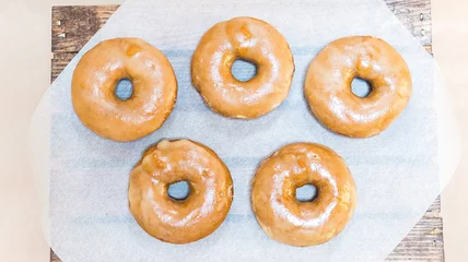 - Dip each doughnut face down into the glaze (do a double dip if you're feeling adventurous). Let dry on parchment paper, then serve.