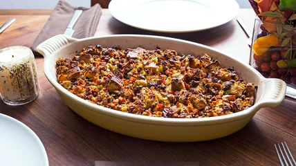 Let's be real, stuffing is the real star at Thanksgiving. Travis Swikard, executive chef of Boulud Sud in NYC, shares his recipe that puts an Italian twist on the traditional version using ciabatta bread and pancetta. Don't worry, it still comes loaded with sage, cranberries and chestnuts for the perfect blend of taste and texture. Finally, Swikard sneaks in the turkey gizzards, so you can put them to good use instead of throwing them out.