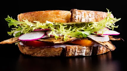- Lay 3 slices of toasted sourdough on a cutting board and spread each with some of the lemon mayo. Place 2 slices of the tomato and a few slices of the eggplant bacon, radishes and onion on the sandwich. Pile some frisée over the vegetables and top with another piece of toasted sourdough spread with the lemon mayo. Slice in half and serve. *This article was originally published on 09/30/2016 by Tasting Table editors. The restaurant, chef and/or recipe are in no way affiliated with or endorsing the featured sponsor.