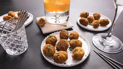 Sicily's vibrant green, buttery Castelvetrano olives are worth seeking out for their mild, not-overly-briny flavor. Here, they're transformed into more sophisticated bar snacks when stuffed with fried mortadella and then fried to golden perfection—a nod to Italy, where it's common to find deep-fried olives stuffed with ground pork or other meats. If you can't find mortadella, a cured meat, substitute bologna instead. Then pair these cocktail bites with an Italian aperitivo, such as a Negroni.