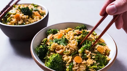 - Add the remaining 2 tablespoons of peanut oil to the wok. Add the cold rice to the pan with the remaining scallion and soy mixtures. Using a wooden spoon, break up the rice and spread into an even layer. Let cook until the bottom of the rice begins to crisp, 3 to 4 minutes. Add the reserved vegetables and eggs to the pan. Toss until incorporated and warmed through, 2 minutes more. Divide between bowls and serve.