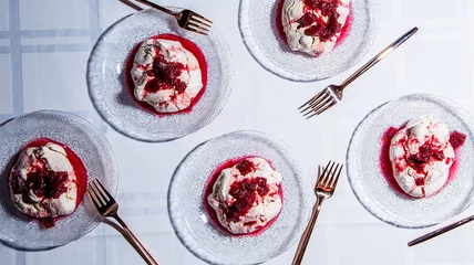 Here, chef Jenn Louis of Lincoln in Portland, Oregon, shares her recipe for these crunchy meringue cookies laced with whole hazelnuts and a hint of vanilla and cinnamon. The best part: a rhubarb and Manischewitz wine (yep, we love sweet wine, too) conserva is then spooned over top.