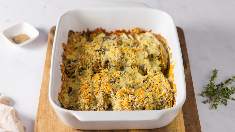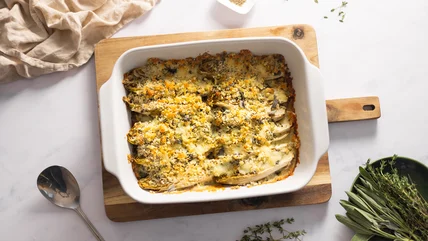 This Belgian endive and Basque blue cheese gratin is a brilliant dish to prepare in advance of a dinner. Douglas states, "Prepare the gratin as directed, then cover and place into the fridge until you are ready to eat. Simply bake when you are ready to do so, and serve warm from the oven alongside your favorite dishes." If you would like to prepare weeks in advance, freezing the gratin is a wonderful option that allows the dish to be preserved exactly as is, retaining the irresistible taste and texture. The frozen gratin can be easily defrosted in the fridge, and then baked until perfectly crispy, golden brown, and morish. If you are short on time, both freezing and refrigerating are effective ways to get ahead of meal preparation and ensure you have a delicious, comforting dish that still impresses a hungry crowd.