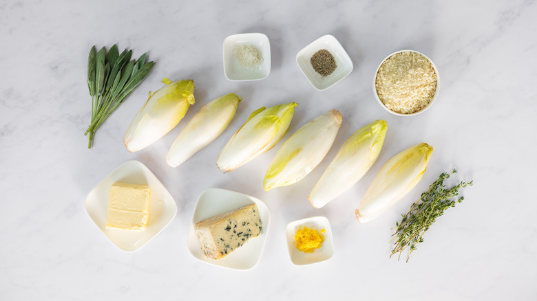 Gather the ingredients for the Belgian endive and Basque blue cheese gratin
