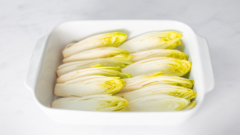 Add the endives to a large baking dish.