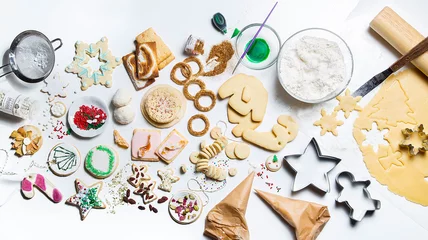 - Lightly flour a kitchen surface, place the dough disk on top and lightly flour the dough. Using a rolling pin, gently pound the dough to a ½-inch thickness, then roll to a generous ⅛-inch thickness. Use a cookie cutter to punch out shapes and transfer them to the prepared baking sheet. Gather the scraps into a bowl and roll them out up to 2 times more, chilling if the dough becomes too sticky. Bake until the bottoms and edges of the cookies begin to turn golden brown, 7 to 10 minutes, then remove and transfer the cookies to a cooling rack. Wait until the cookies are completely cool to frost as desired.