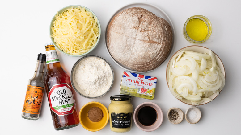Gather the ingredients for caramelized onion Welsh rarebit