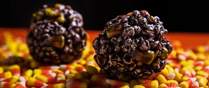 Here's a thriller of a Halloween idea: popcorn balls dressed in a black food coloring costume.