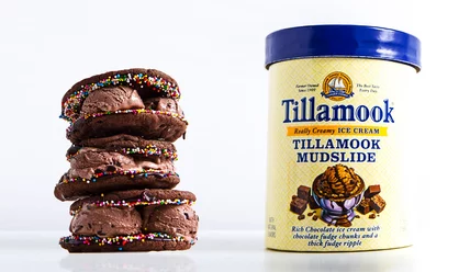 As if fudgy Tillamook Mudslide Ice Cream sandwiched in between salted chocolate cookies isn't decadent enough, when tropical mango is slipped into to the stack, this frozen creation sings. And don't forget the sprinkles, because who doesn't love the colorful soft crunch of confetti?