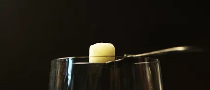 - In a jigger, measure out the absinthe, then drop in the sugar cube to allow it to partially absorb the liquor.
