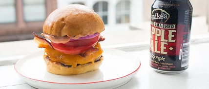 Josh Capon of New York City's Lure Fishbar makes a spin-off of the traditional pork and apple combo with a super-rich burger with bacon and pork paired with Mike's Hard Apple. If you'd like even more porky flavor, toast the hamburger buns in the rendered bacon fat.