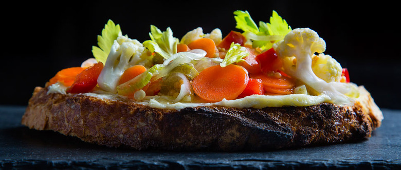 Now go ahead and add the reserved pickling liquid to our large bowl of vegetables and stir to combine. Transfer the mixture into one large 32-ounce jar or two smaller jars. Add the lids and refrigerate for 24 hours so the vegetable mixture can marinate. Then your giardiniera is ready to eat as is or add to the food of your choice. "If you are entertaining and have a spread of food for your guests, I think it's a nice addition to have a condiment bar with various toppers," Hahn suggests. "Giardiniera looks so bright and festive and you'll really impress your guests with this delicious, spicy combination."
