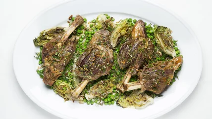 This dish is lighter than what I used to eat as a kid-but you should still dig for that rich marrow. The shanks are gently braised and served over a bed of sweet peas and charred lettuce. It's all topped with fried shallots, herbs and a generous sprinkle of green garlic-which is harvested before the cloves mature, resulting in a milder, more delicate flavor. Even if you don't make it for Easter dinner, this rustic lamb dish is a celebration of the beginning of spring.