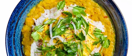Spiced Dal Breakfast Bowl with Yogurt and Pickled Daikon
