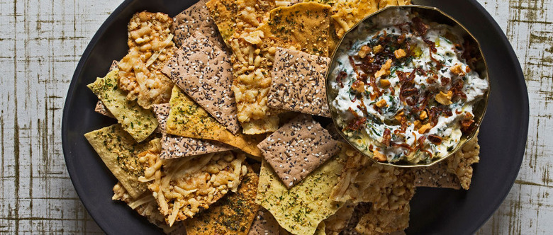 - To serve, put the dip in a bowl and top it with the remaining oregano, walnuts and the reserved crispy shallots. Drizzle with olive oil and serve with crackers.