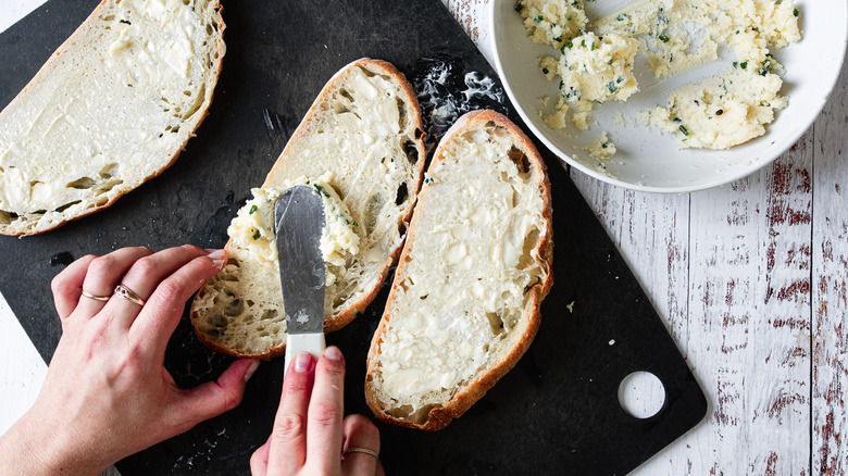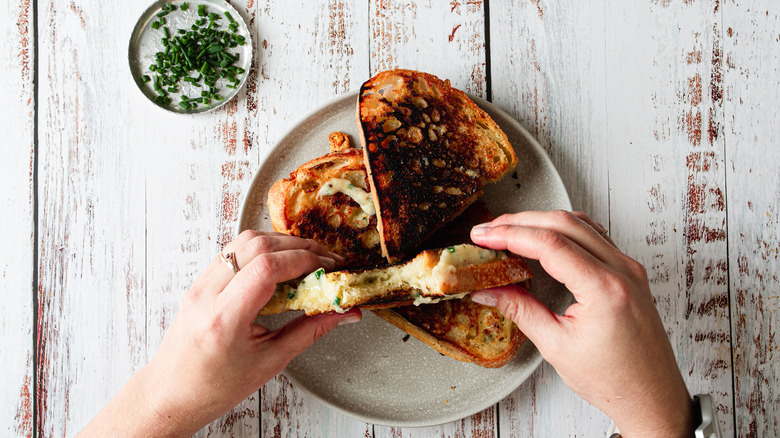 The ultimate grilled cheese recipe is a holy trinity of the perfect melted, gooey cheese, two crisp bread slices, and the fat that enables all the beautiful browning to occur. Grilled cheese purists often look for that cheese pull and characteristic "crunch" as they bite into the grilled cheese. This recipe, from Ksenia Prints of international recipe blog At the Immigrant's Table, makes use of a combination of cheese — cheddar and Gruyère — for the maximum gooeyness.