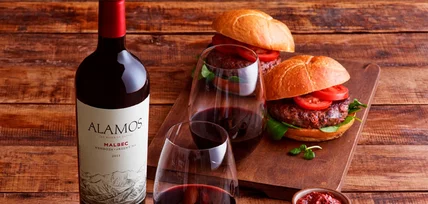 - Make the burgers: Preheat oven to 375°. In a large mixing bowl, combine the lamb, pork, beef, breadcrumbs, chopped tomatoes, parsley, roasted garlic, sun-dried tomatoes, roasted red pepper, chiles, egg, Alamos Malbec, brown sugar, paprika and red pepper flakes and season with salt. Mix gently with your hands until combined. Divide the burger blend into 5 equal parts, then gently pat shape to form patties.