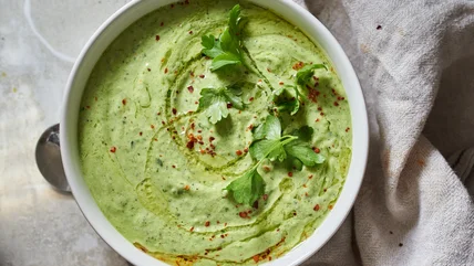 Learn how to make this refreshing, spicy, and garlicky green gazpacho with cucumbers, mint, Thai chiles, and avocado.