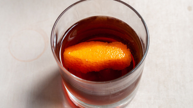 As we've already discussed, there are but 3 liquid ingredients you'll put into this Manhattan cocktail: rye whiskey, vermouth, and Angostura bitters. There is, of course, a fourth ingredient, which is the orange peel, and you'll definitely want those citrusy notes to cut the dryness of the cocktail. This recipe is very bare-bones, and Musgrave notes that there isn't a special or stand-out ingredient in the mix. Nothing wrong with the classics!